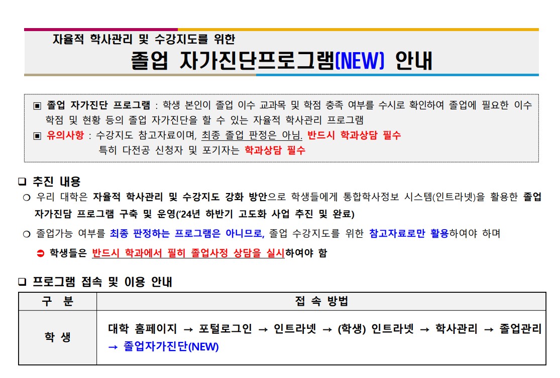 졸업 자가진단프로그램 안내